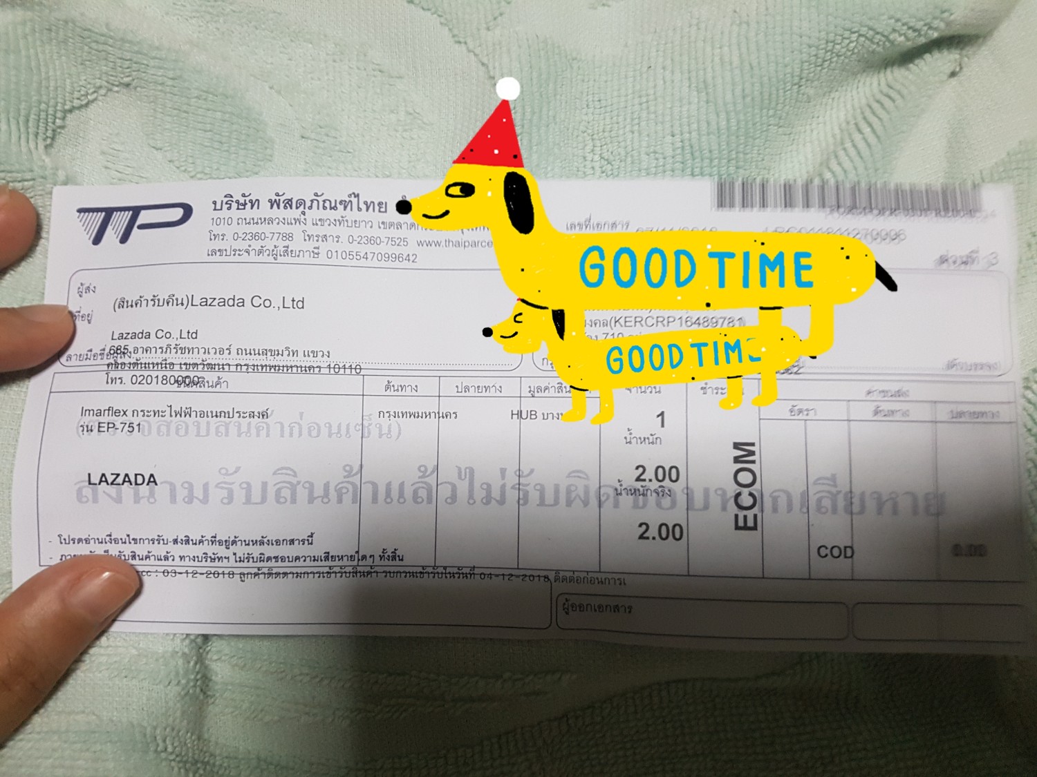 -และ cs บอกให้เราส่งทางไปรษณีย์ แบบems เราก็ไปส่ง ก็ไม่สามารถส่งได้เนื่องจากขนาดสินค้าใหญ่เกินไป เราก็ติดต่อไปหา cs อีกครั้งว่าจะเอาไง ในวันที่ 27 พ.ย.ที่ผ่านมา เขาบอกจะดำเนินเรื่องให้ จนผ่านมาวันที่ 3ธ.ค. เราก็ติดต่อไป ถึงได้ทราบว่า cs เพิ่งดำเนินเรื่องให้จริงๆวันนั้น จนวันที่ 4 เจ้าหน้าที้มารับของ