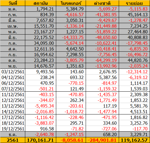 Sinthorn Summary 19/12/2561 : ต่างชาติขายสุทธิ -727.06 ลบ.