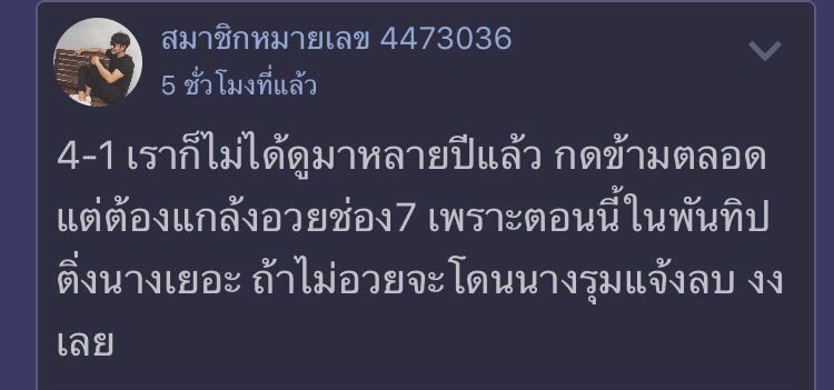 ผมได้แสดงแจ้งเตือนเข้ามาเรื่อง สมาชิกหมายเลข 1277787 ที่ตั้งกระทู้ไม่เหมาะสมซึ่งมีเนื้อหาที่เจตนาก่อให้เกิดการทะเลาะวิวาทหรือก่อให้เกิดความวุ่นวายและมีเนื้อหาที่หยาบคายก้าวร้าวเกินกว่าที่บรรทัดฐานของส