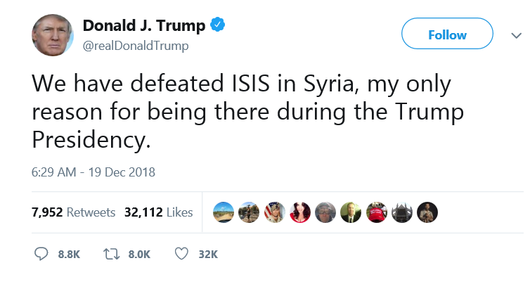 ดีใจยังกับเป็นชาวซีเรีย ปธน.ทรัมป์ ส่งสัญญานถอนทหาร