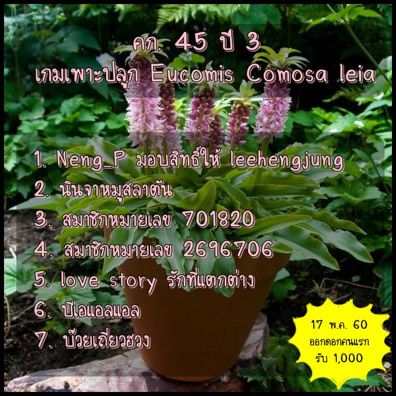 ¨°💰«·🌱💒~ 💎💕*⏰°•💫•:.::: กระทู้ที่ 355 ประกาศปิดคก.45 ปี 3 เกมปลูก Eucomis Comosa leia :::.:•💫•°⏰*💕💎 ~💒🌱·»💰°¨