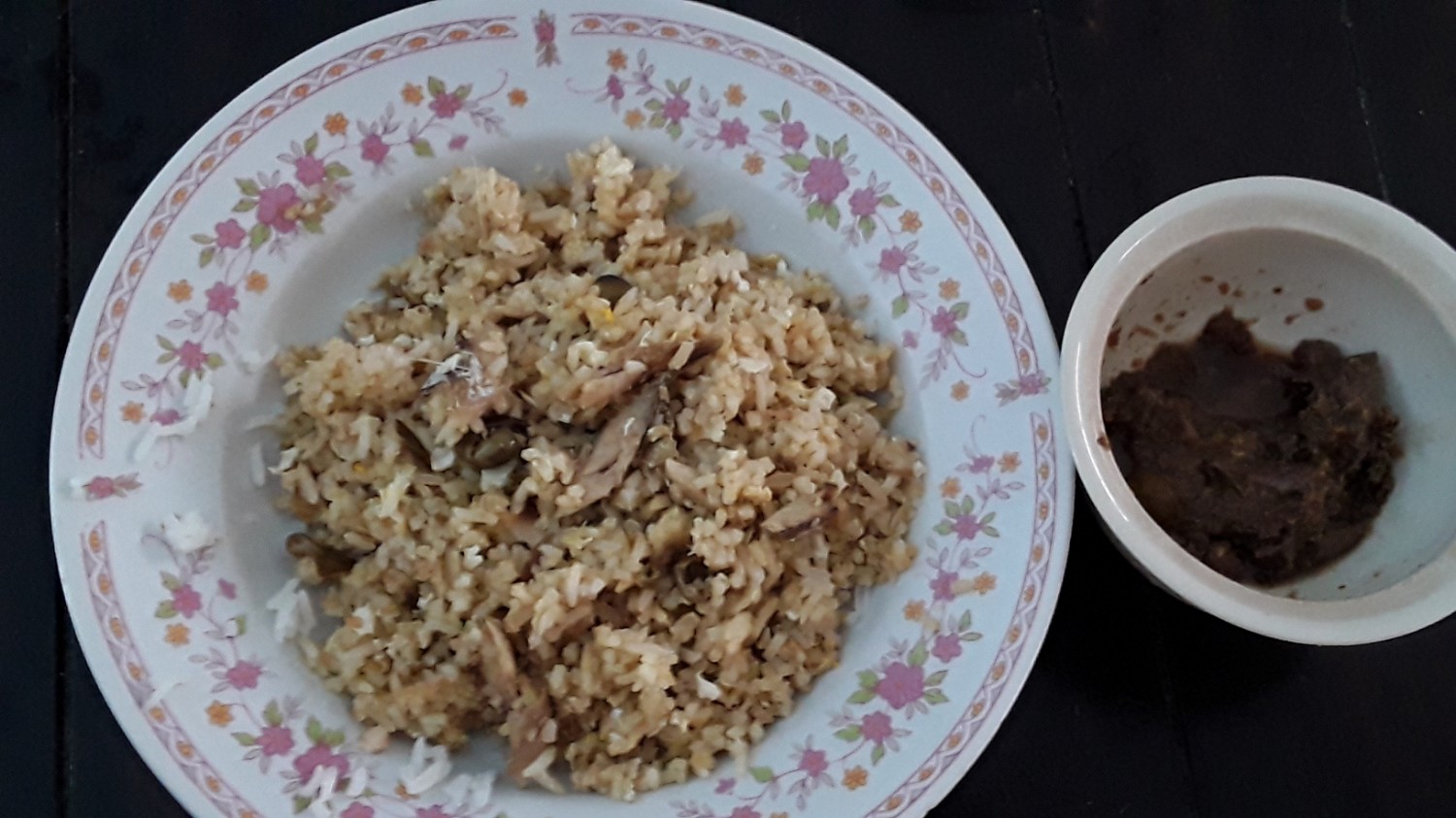 1.แกะเนื้อปลาและน้ำพริกขยำขจ้าวให้ทั่ว