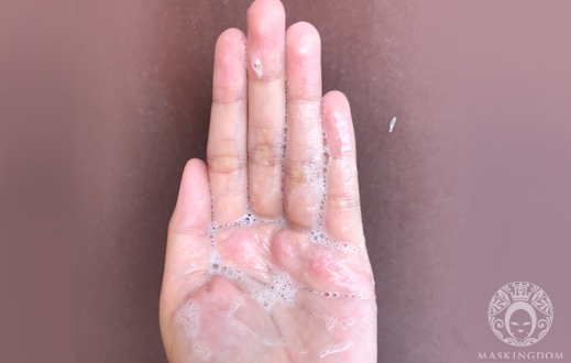 หลังจากนั้นก็ใส่น้ำมากขึ้นและเริ่มถูวนเบาๆ จากแผ่นคลีนซิ่งก็จะกลายเป็นฟองสีขาว