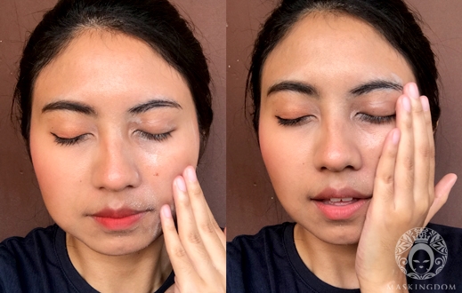 เราจะทดลองการล้างเครื่องสำอางหลังฝ่ามือก่อน