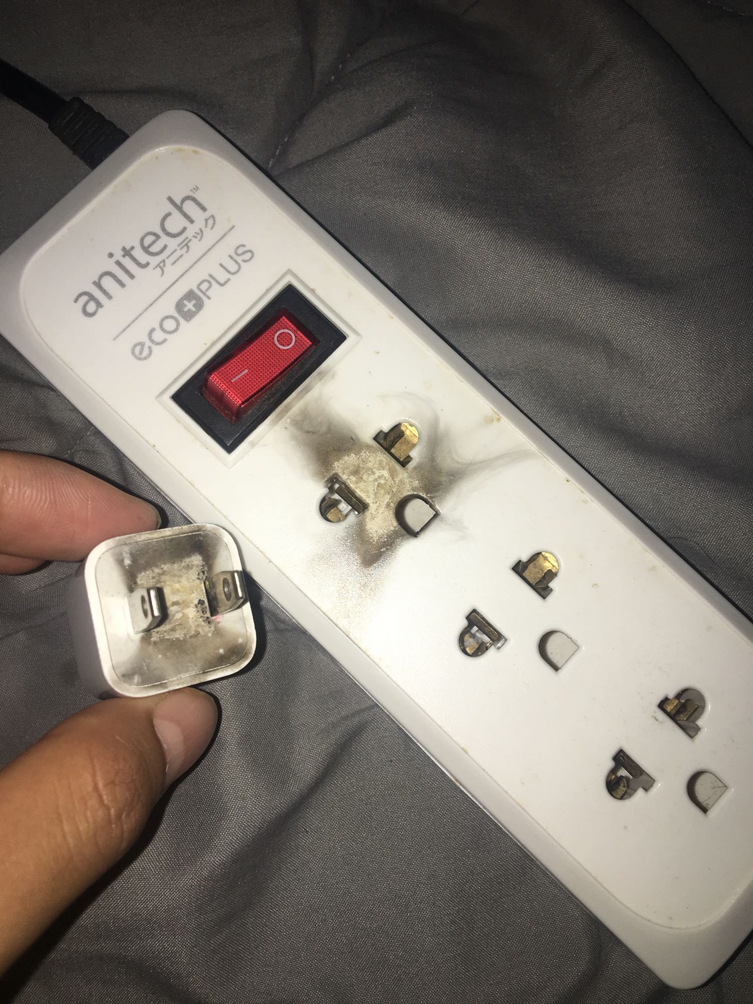 ผมชาร์จแบตเต็มมือถือไอโฟน6sจนเต็ม ลืมเอาออกนานถึง 5 ชม. แล้วตื่นขึ้นมามีคนโทรเข้ามือถือ ผมหยิบมือถือลืมถอนปลั๊กทันใดนั้นปลั๊กระเบิด สายชาร์จตรงกลางเส้นก็ไฟไหม้(สายไม่แท้) รู ปลั๊กสามตาก็ไหม้ หัวสายชารจ์ก็ไหม้(หัวแท้) สรุปแล้วผมยังจะใช้หัวแท้ได้ไหม แล้วเหตุการณ์นี้เกิดจากอะไรครับ ปล.ทุกอย่างยังใช้ได้ครับแต่ไม่ไว้ใจเหมือนเดิม เพราะเกือบตายคาผ้าห่ม ดีนะครับมันไม่ไวไฟ...