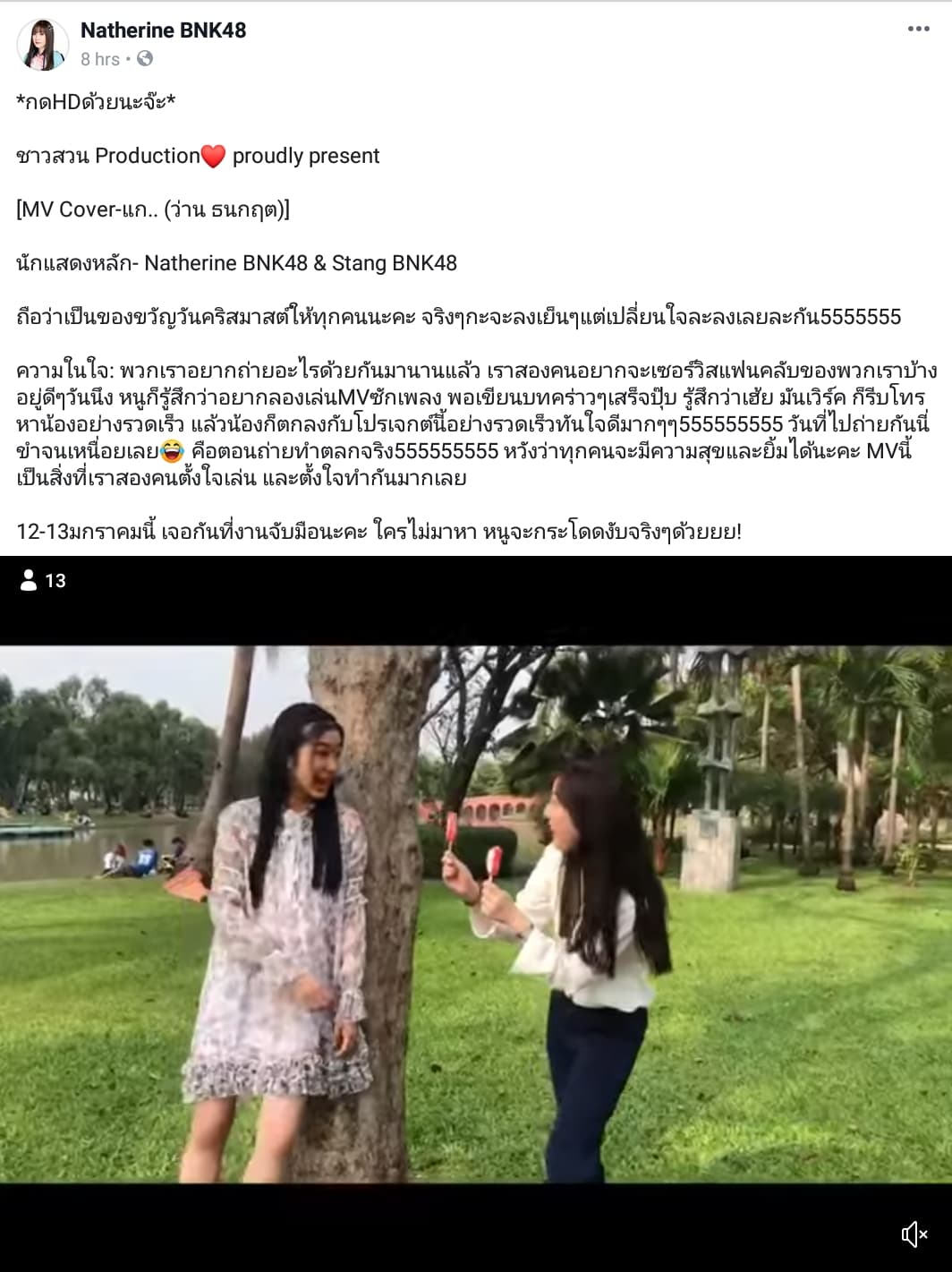 คลิปเต็มๆ https://www.facebook.com/bnk48official.natherine/videos/1491423830960361