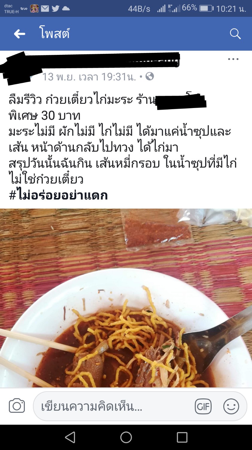 9.เราจึงถ่ายรูปก๋วยเตี๋ยวที่เราได้เขียนลงเฟสส่วนตัวของเรา ไม่มีการเช็คอินที่ร้าน ไม่ได้บอกชื่อร้าน
