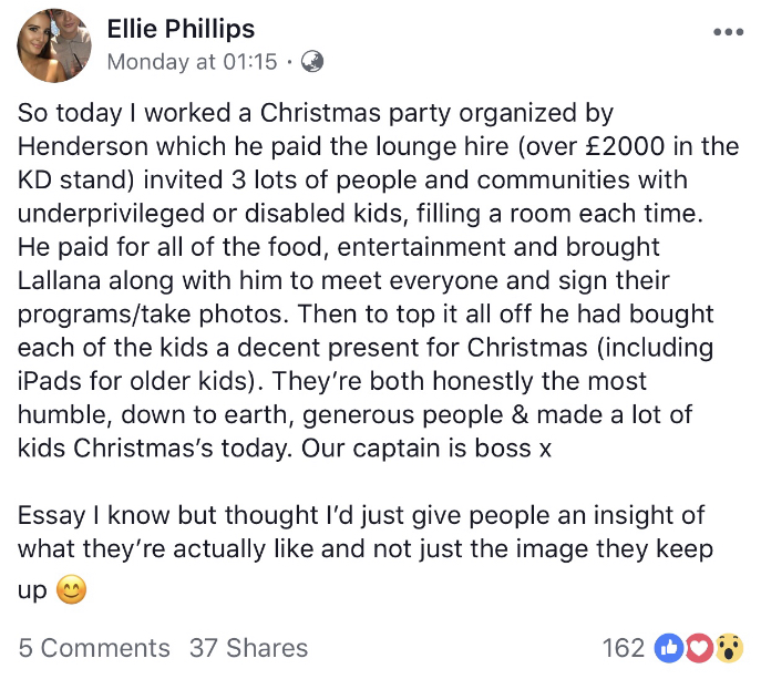 คริสต์มาสที่ผ่านมา แค็ปเฮน ได้จัดงานปาร์ตี้ขึ้นมาที่แอนฟิลด์ โดยเปิดห้องรับรองสแตนด์ฝั่ง คิง เคนนี่