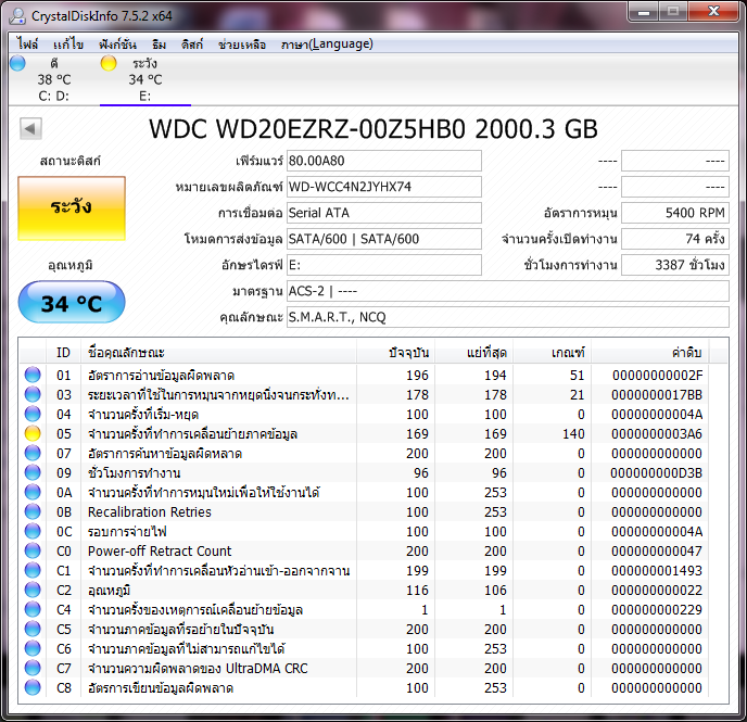 # . ตรวจฮาร์ดดิสก์เอ็กเทอน่อล 2000 Gig สถานะระวัง จำนวนภาคที่รอย้ายข้อมูลมันคืออะไรท่านใดเข้าใจรู้บ้างครับ