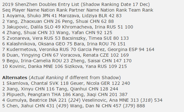 ลักษิกา แข่งขันในประเภทเดี่ยว ส่วนเพียงธารที่สมัครแข่งในประเภทคู่ อันดับยังอยู่ฐานะสำรองอันดับที่สามอยู่ แต่ล่าสุดเลื่อนขึ้นมาในสำรองอันดับที่สองละ เนื่องจากคู่จีนได้ไวด์การ์ดเข้าแข่งขันไปแล้ว แต่ลุ้นว่าจะได้เล่นมั้ยในสัปดาห์หน้า