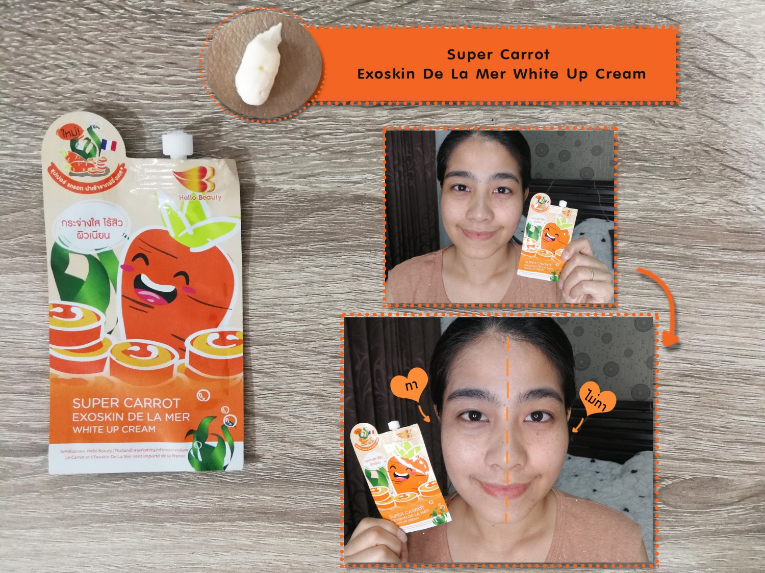 ตัวนี้เป็นเนื้อครีมใส ทาแล้วซึมลงผิวทันทีเลย กลิ่นหอมส้มๆ