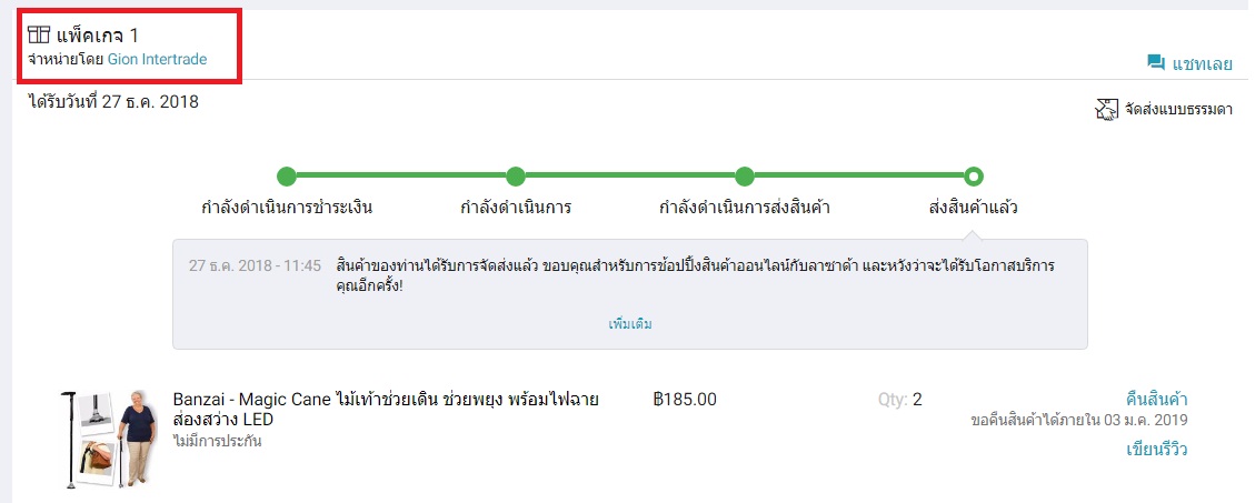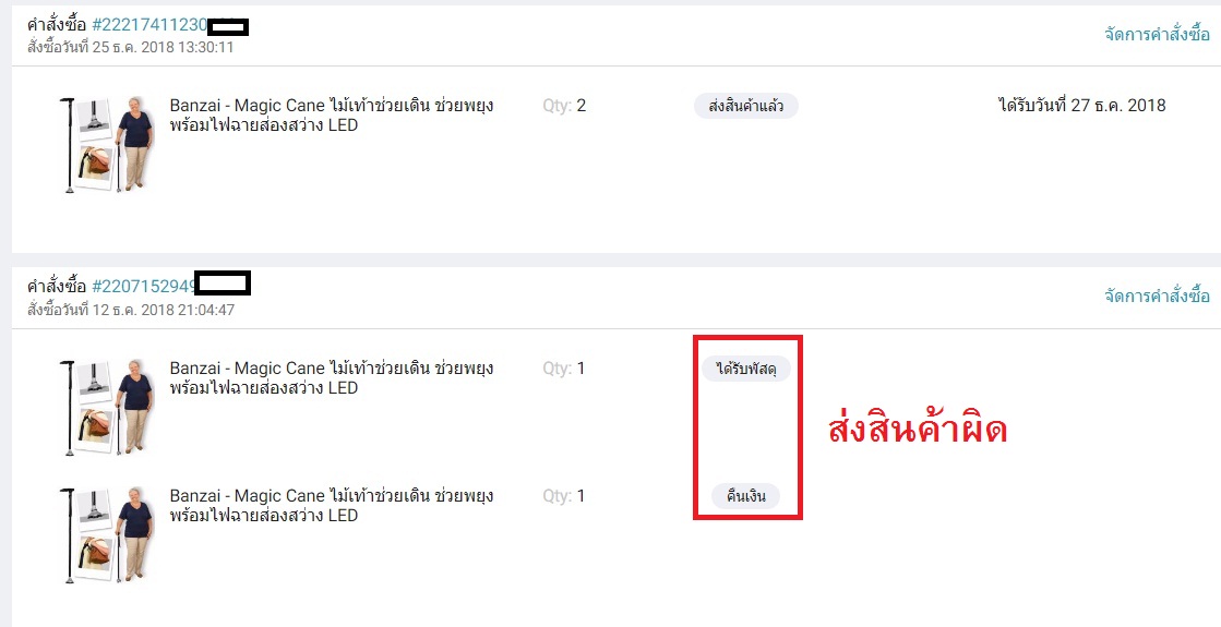 เมื่อได้รับเงินคืนแล้ว ผมก็สั่งสินค้าเดิม คือ Magic Cane จากร้านเดิม