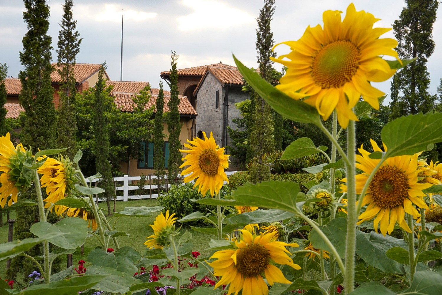สวนดอกไม้โรแมนติกที่โอบล้อมด้วยภูเขา