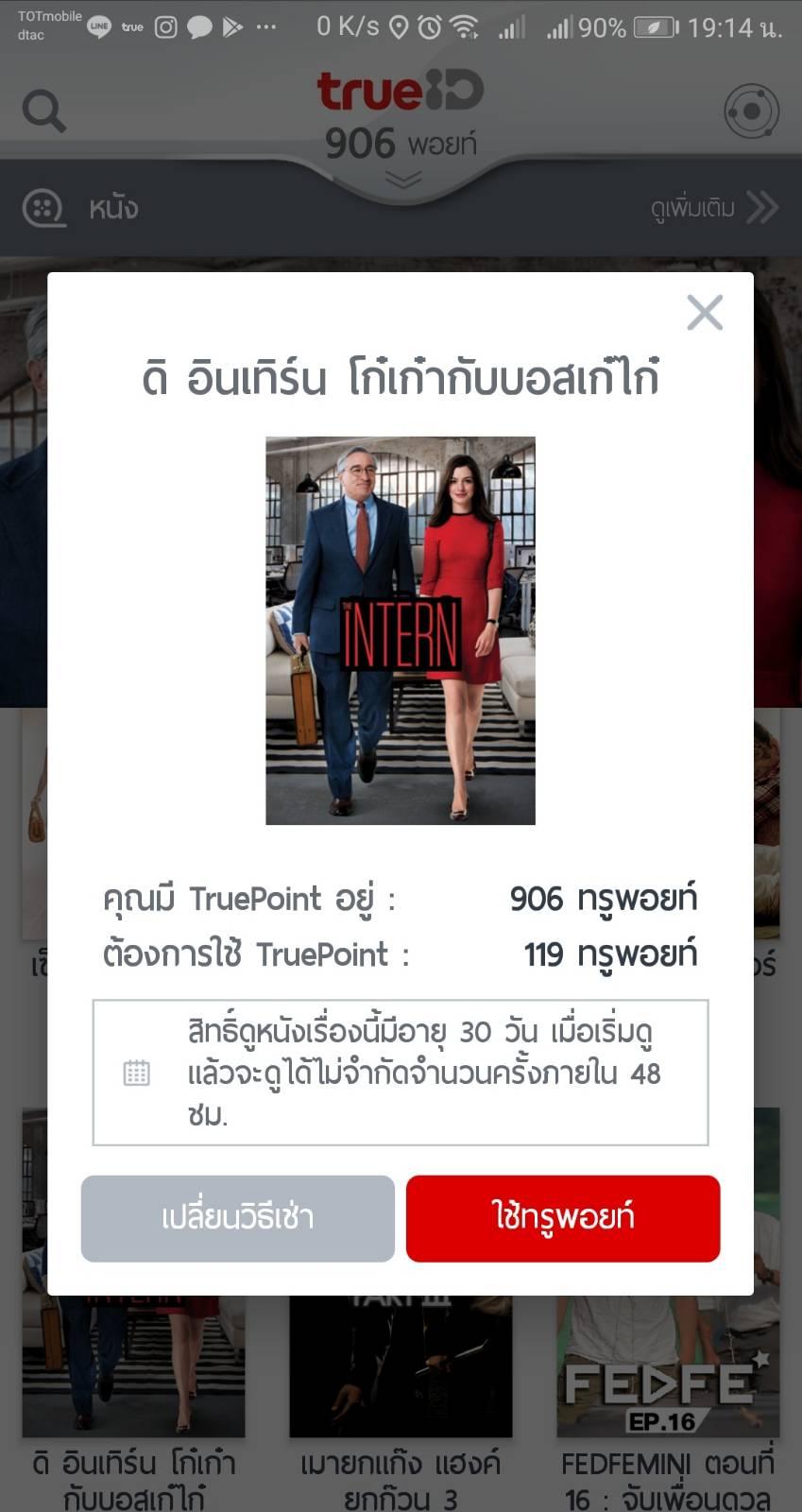 ใช้ทรูพอยน์ดูหนังบนแอพ true id.ไม่ได้
