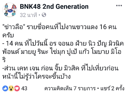 รายชื่อสมาชิก BNK48 ที่ขึ้นงานขาวเเดงที่ญี่ปุ่นอย่างเป็นทางการจาก อฟช.