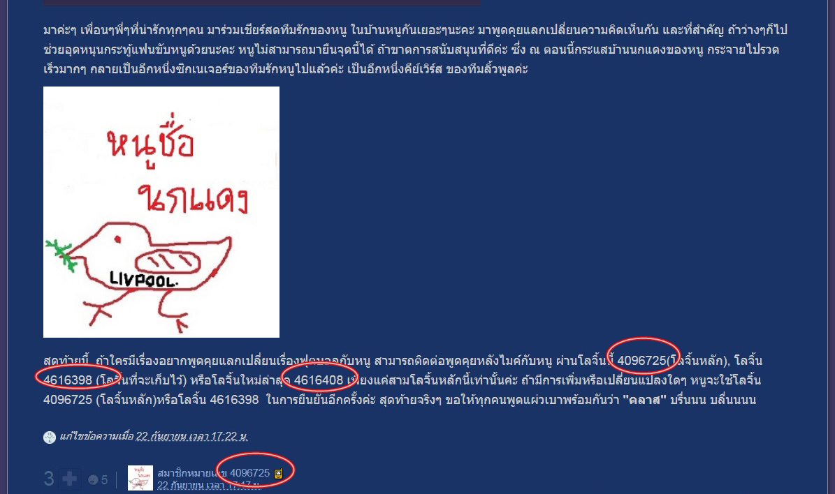 เป็นหมายเลขก่อนที่จะใช้นกแดง ผลิกกระทู้เยอะๆ โดยใช้หมายเลขนี้