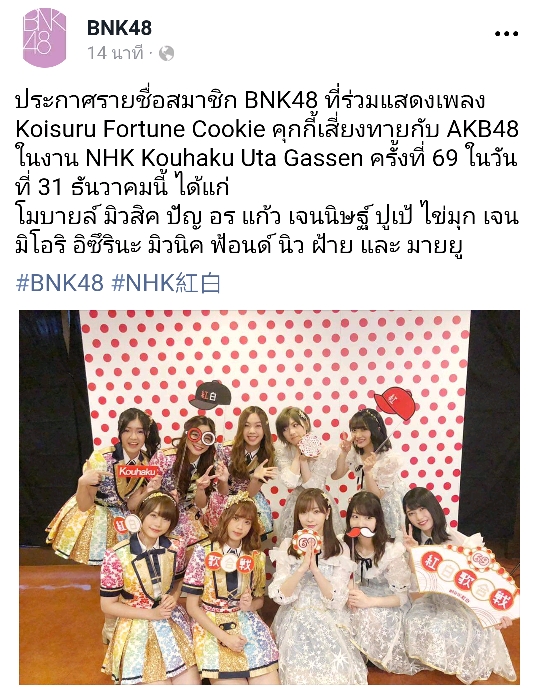 รายชื่อสมาชิก BNK48 ที่ขึ้นงานขาวเเดงที่ญี่ปุ่นอย่างเป็นทางการจาก อฟช.