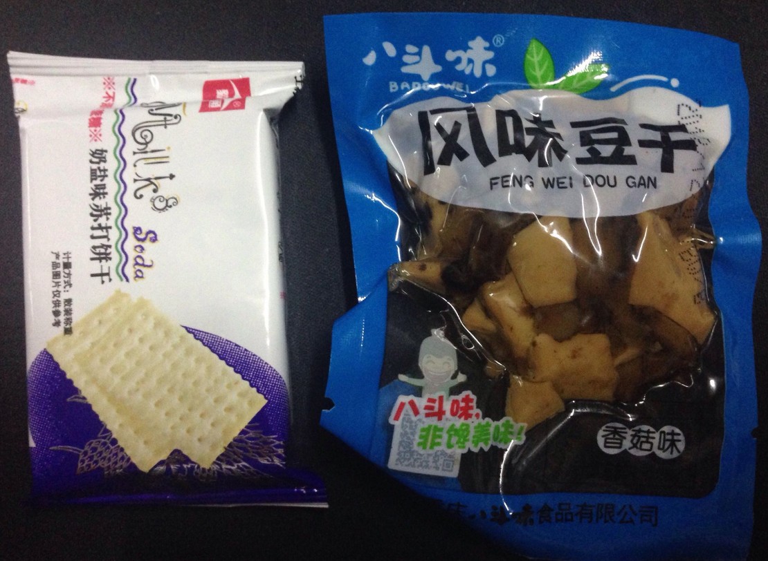 ถ้าเป็นตอนเช้าจะมีให้เลือกระหว่างขนมที่เป็นแป้งก้อนสี่เหลี่ยมใส่ไส้ หรือจะเลือกข้าวต้ม