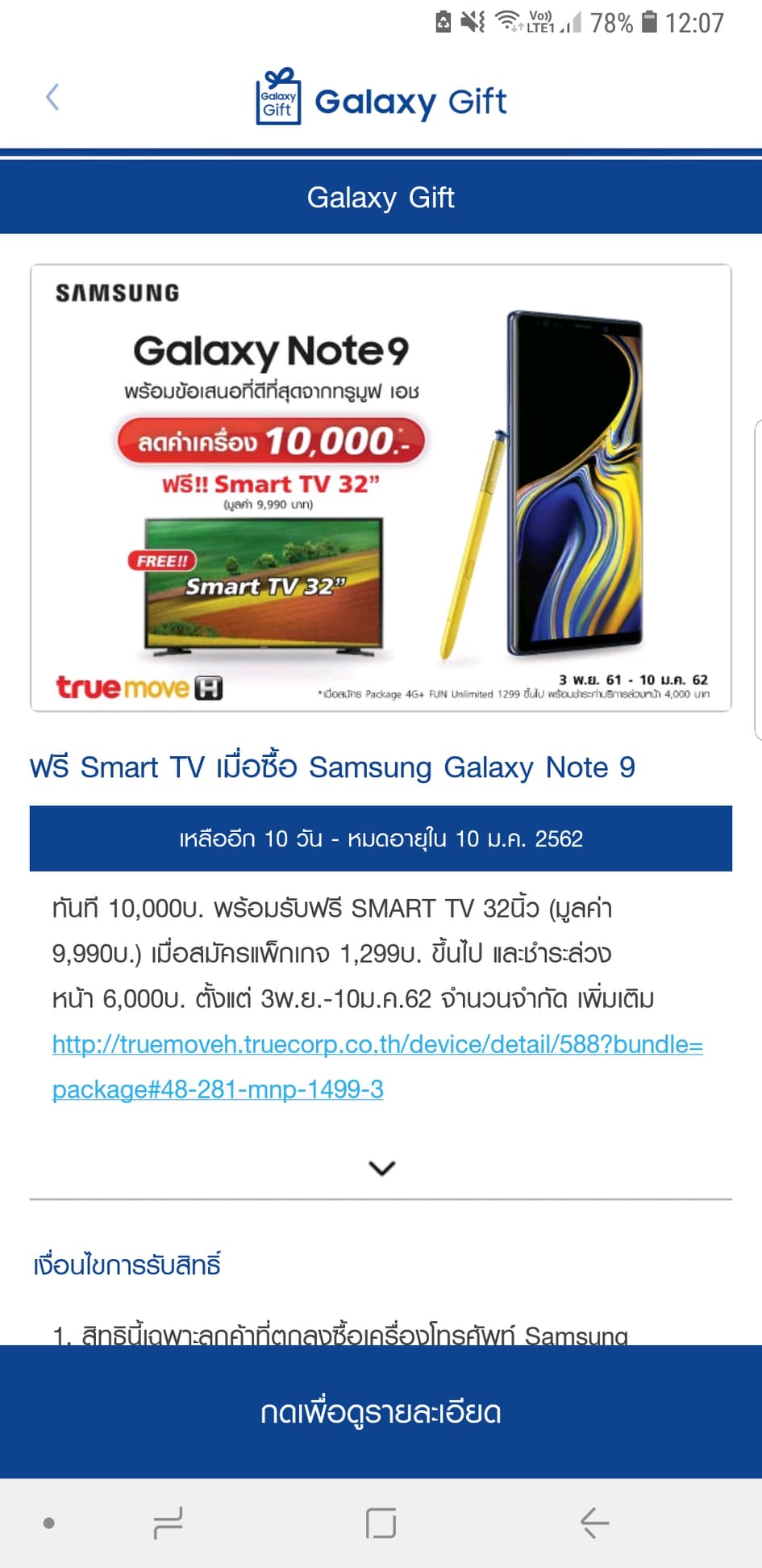 เรามีปัญหาเรื่องโปร SS GLX Note 9 พร้อม Smart TV 32''