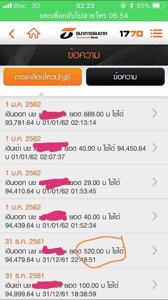 01:30 มันมีข้อความแจ้งเข้ามาว่าเงินออก