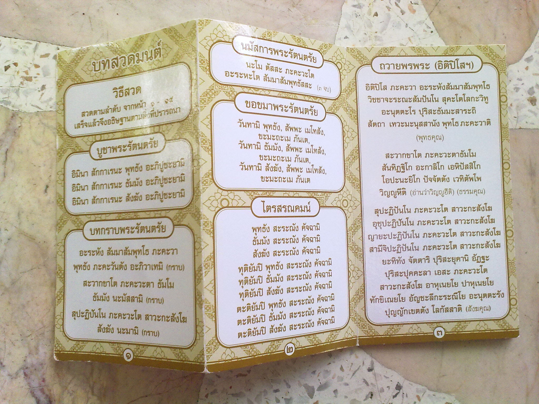 สวัสดีค่ะเพื่อนๆพี่ๆทุกท่าน พอดีเราสวดมนต์มาสักระยะหนึ่งแล้ว ไปเจอบทสวดมนต์แบบแผ่นพับมาค่ะ พลิกอ่านดูมีไม่กี่หน้า แต่บทสวดในนั้นเป็นบทที่ใช้ท่องประจำวันพอดีเลยค่ะ เราว่ามันพกสะดวกดีจังเลย แต่ไม่รู้ไปห