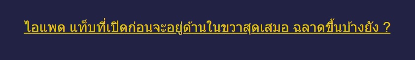 จากกูรูผู้รู้รอบ ท่านบอกไว้ว่า ผมก็เพียรพยายามมาข้ามปีแล้ว ไอแพดผมมันก็ยังดื้อ เปิดแท็บใหม่ทีไร มั๊นก็อยู่ทางขวาซะทู๊กที ไม่เคยรี่ไปอยู่ทางซ้ายอย่างท่านกูรูผู้รู้รอบว่า โยนลงเครื่องซักผ้าก็แ