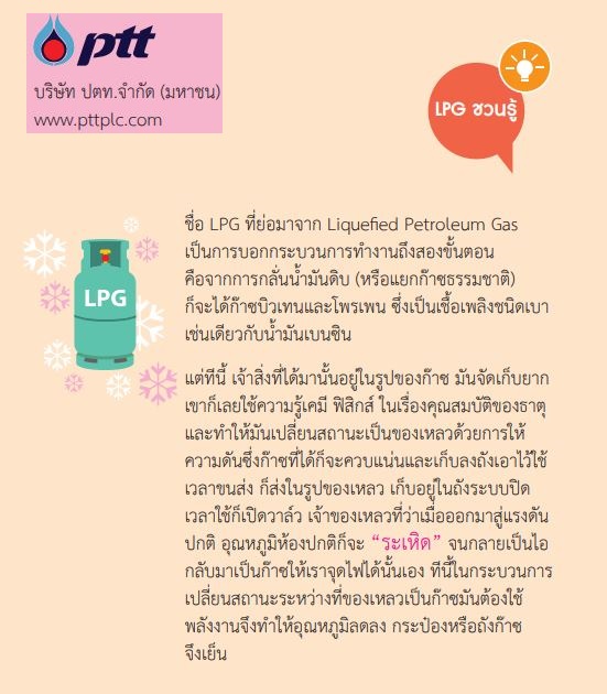 ตามเอกสารแนะนำของทาง ปตท. บอกว่าแก็สเป็นของเหลวกลายเป็นไอแก็ส