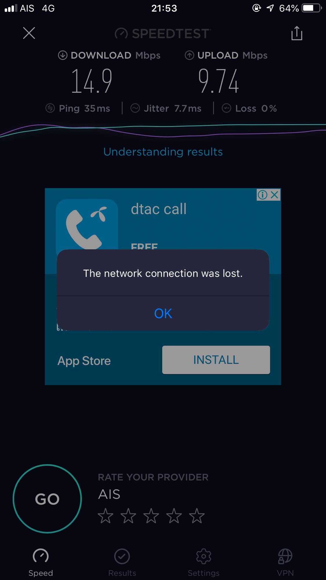 ตั้งแต่ 2 ทุ่มหลุดตลอด เล่นเกมส์ก็ reconnect ทดสอบความเร็วก็ lost
