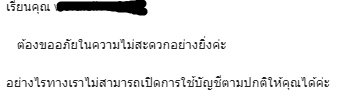จนมาวันนี้ตอนเช้าได้รับเมลล์ฉบับนี้แจ้งว่าจะไม่ปลดการระงับให้