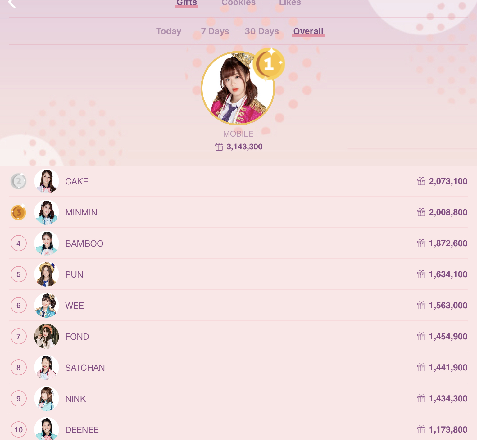 liveสด ดีนี่bnk48 คืนเดียว ทำให้ยอดเปย์เฉพาะคืนเดียวสามแสนคุ๊กกี้ พุ่งสู่อันดับที่18ของวง