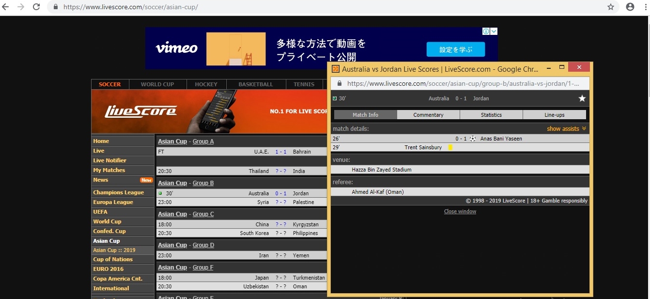 Asian Cup คู่ ออสเตเรีย vs จอร์แดน ตอนนี้ ออสซี่โดนนำแล้วจ้าาา