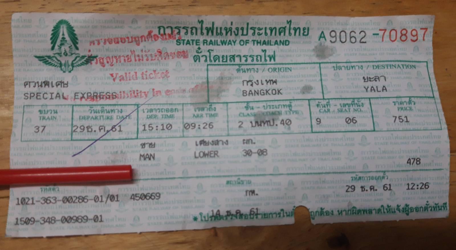 เราเลยไปจัดการจองตั๋วรถไฟทันที จึงไปจอง จากกรุงเทพ-ยะลา ไปวันที่ 29 มกราคม พ.ศ.2562 กลับ ยะลา-กรุงเทพ วันที่ 1 มกราคม พ.ศ.2562 ตั้งใจว่า จะเอาตู้นอนชั้น 2 จะๆด้ไม่เมื่อย จึงรีบจองทัน แต่...ว่าสรุปได้ชั้น 3 ทั้งไปและกลับ เพราะตั๋วถูกการจองเต็มหมดแล้ว เหลือแต่ชั่น 3 อย่างเดียว Oh my god เอาล่ะซิ งานนี้เมื่อยตูดแน่ๆ ถ้าไม่จองตอนนี้ก็อดไปนะรออะไรก็จองสิ ชั้น 3 ก็ ชั้น 3 จึงดำเนินการจองทันที ไม่รอช้าละ เดี๋ยวเต็ม