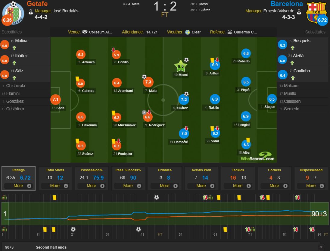 https://www.whoscored.com/Matches/1222281/Live/Spain-La-Liga-2017-2018-Barcelona-Getafe https://youtu.be/1o1v0vV36ew https://youtu.be/DnSjEMopQlE https://youtu.be/zdZWt62oKnw https://youtu.be/Z1D