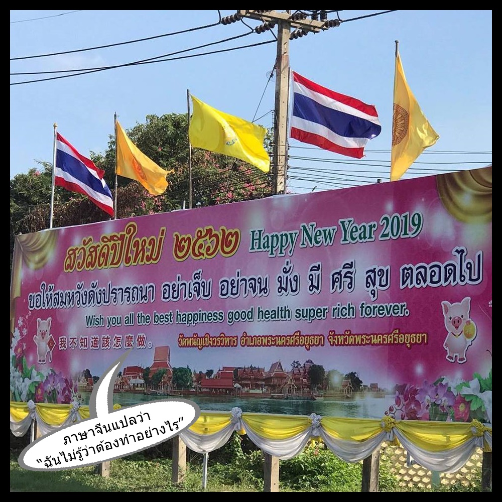 ภาษาจีนบนป้ายอวยพรปีใหม่ 2562 ที่ จ.อยุธยา 我不知道该怎么做 แปลว่า ฉันไม่รู้ว่าต้องทำอย่างไร เขียนผิดหรือเปล่า