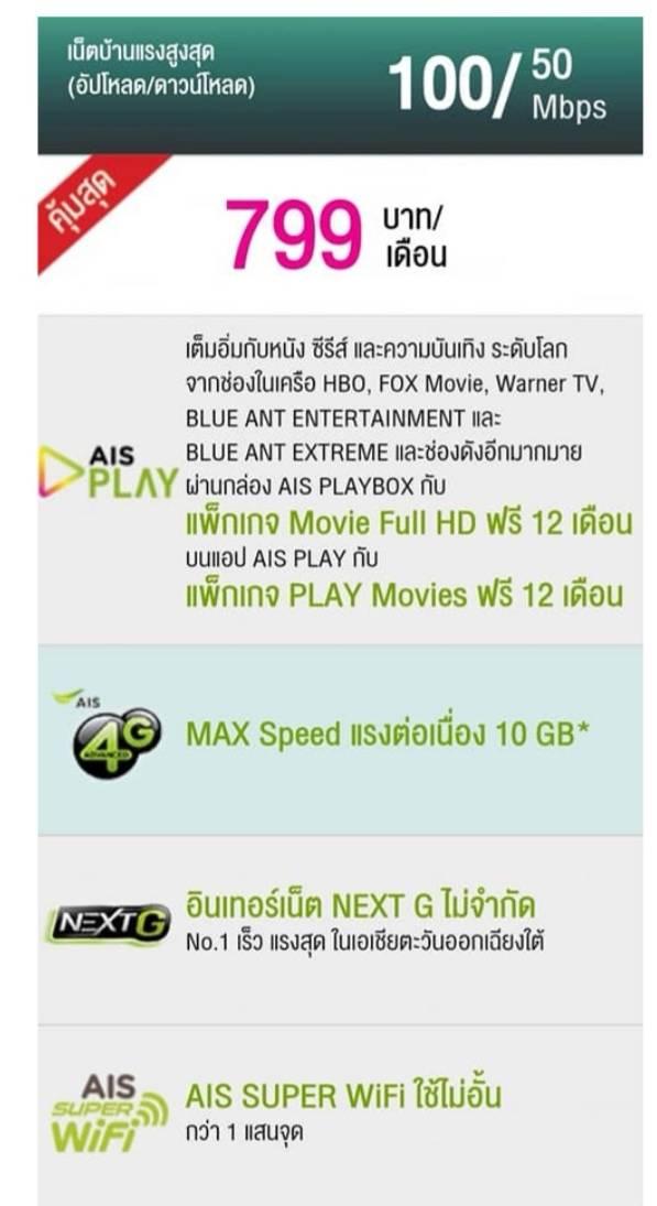 โปรเน็ตบ้านย้ายค่ายจาก True ไป Ais 3bb ราคา 599-799 มีอะไรบ้างครับ