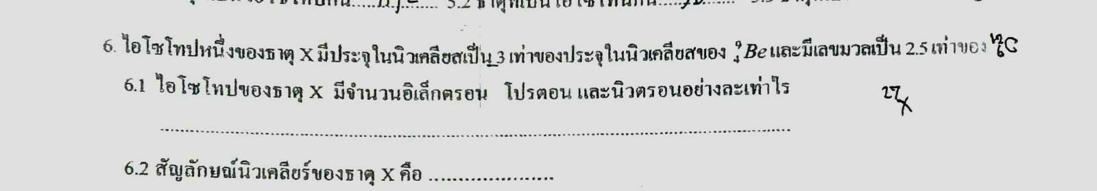 คืองงคำว่าประจุในนิวเคลียสอะค่ะ มันคือโปรตรอนใช่ไหมคะ แล้วข้อ6.2ตอบแบบนี้หรือเปล่าคะ