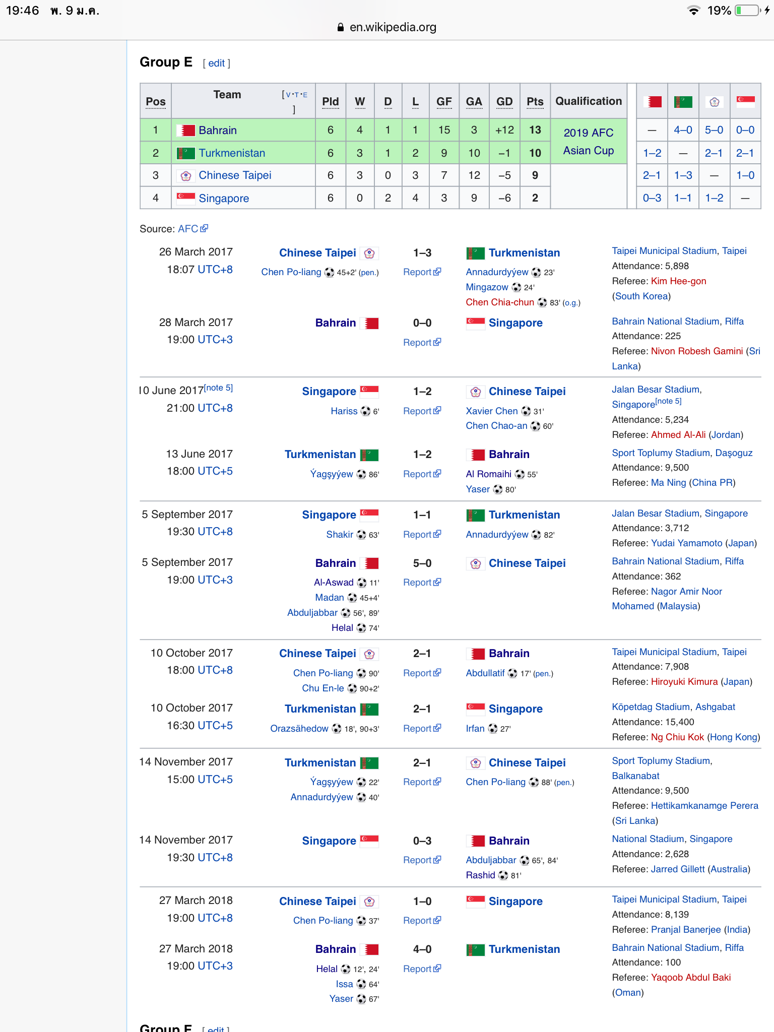 แต่ได้เป็นแชมป์กลุ่ม เพราะแต่ล่ะ.ทีม เตอร์ก. ไต้หวัน สิงค์โปร์อย่างนี้. ไม่ได้แชมป์ก็เกินไป