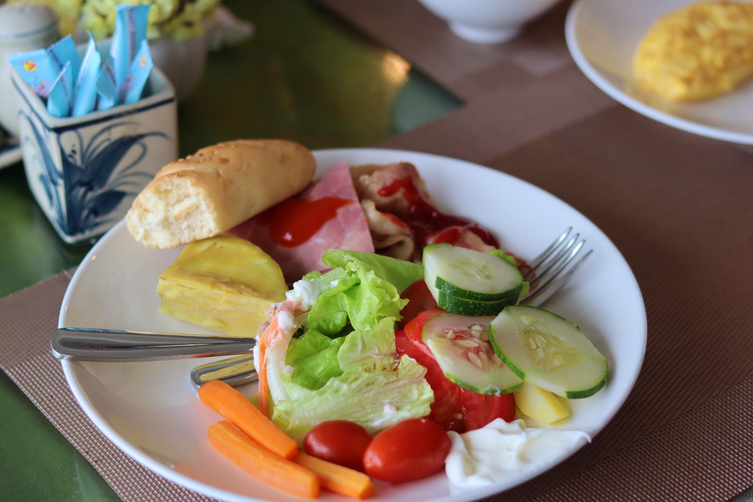 เริ่มต้นด้วยอาหารเช้าที่โรงแรมครับ
