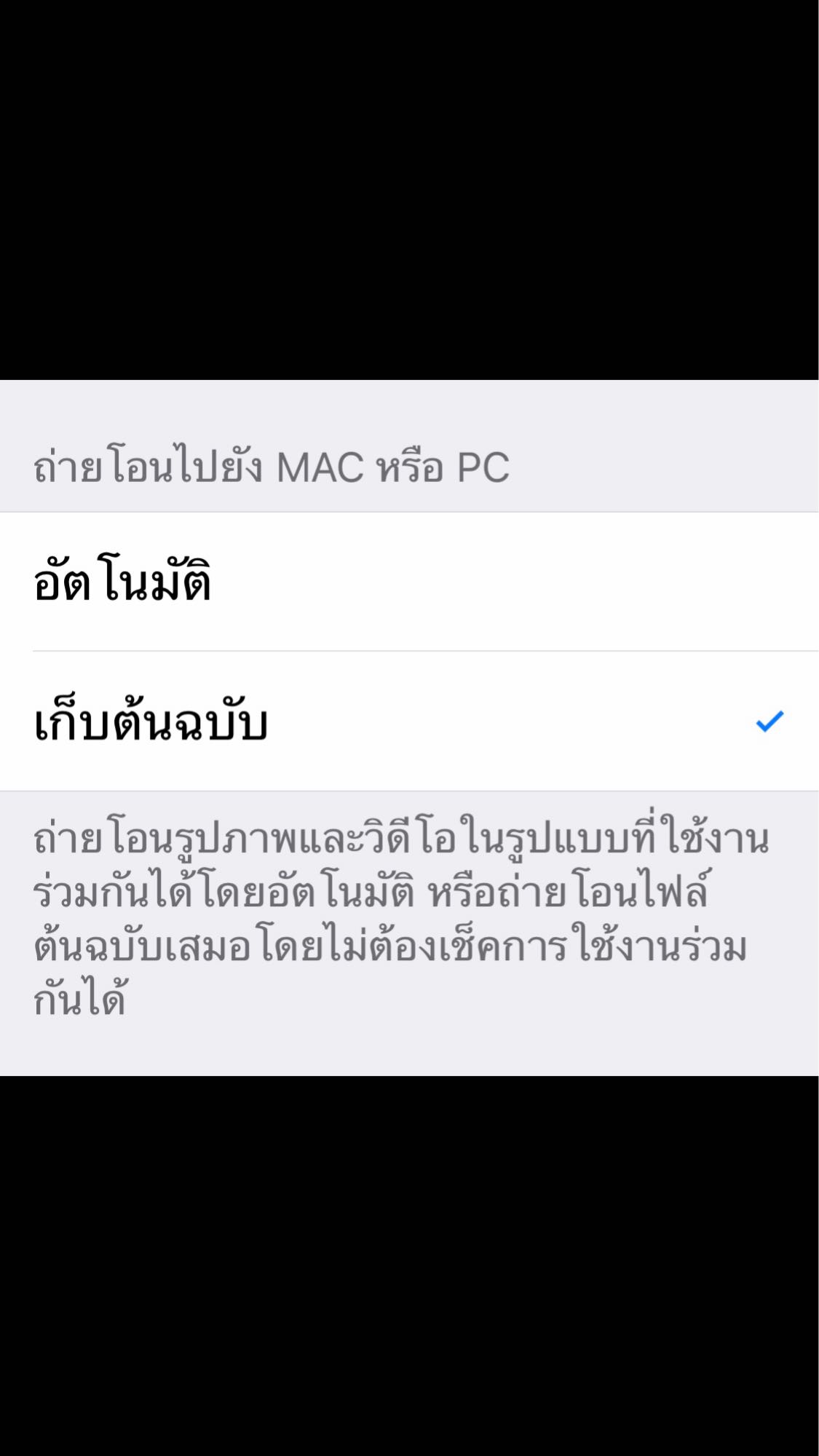 ตามรูปนี้ครับ ผมต้องเลือกการ •ตั้งค่าอันไหนครับ Apple Id ของผมไม่เคยเชื่อมต่อกับ MaX หรือ Pc เลย ผมต้องเลือก การใช้งานไหนครับ ระหว่าง "อัตโนมัติ" หรือ "เก็บต้นฉบับ"