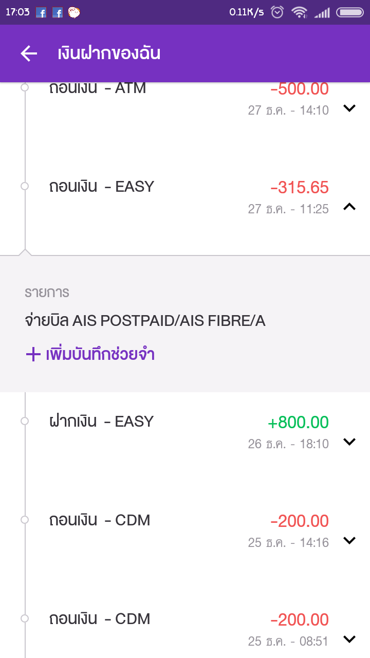 เมื่อคืนลองจ่ายผ่าน K-Bank เลขที่ใบแจ้งหนี้ : 46011301013116 ของเดือน 30/12/2017 เป็นจำนวนเงิน 631.30 ฿ สรุปเช็คตลอดไม่เห็นตัดยอดซักทีคือนึกว่าจะเร็วกว่าไปจ่ายท