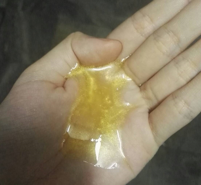 น้ำในซองเค้าให้มาเยอะมาก น้ำจะเป็นสีเหลืองๆ ข้นๆ เราเลยเอามาทาคอ แล้วก็ลำตัว (ทาแล้วก็ยังมีน้ำเหลืออ่ะ คิดดู 5555)