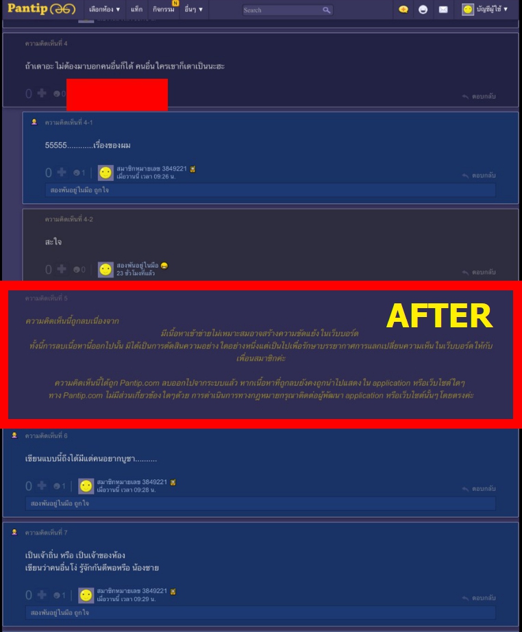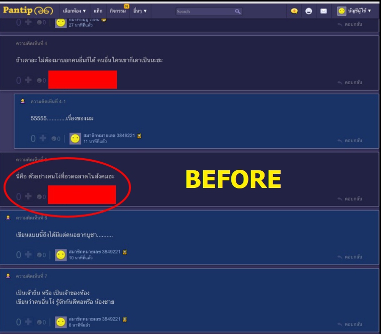 ตัวอย่างความเห็นที่ดูถูกคนอื่น.......ผลคือถูกลบ
