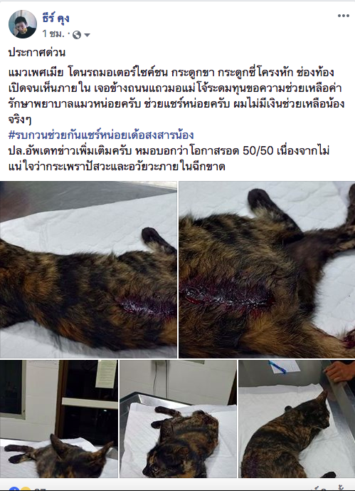 ขอความช่วยเหลือในการระดมทุนช่วยเหลือน้องแมวครับ