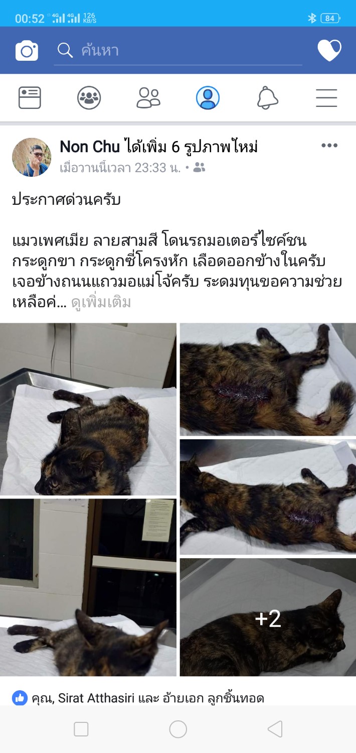 ต้องการระทมช่วยเหลือน้องแมวถูกรถมอเตอร์ไซต์ชนเมื่อคืนครับ พอดีผมเห็นน้องนอนเจ็บอยู่บนถนนครับจึงเอารถเข้าไปช่วยเหลือน้องส่งโรงพยาบาลไปเบื้องต้นแล้วครับ พรุ่งนี้หมอนัดเอ็กเซอเรย์และตรวจเลือดตามขั้นตอนครับ ซึ่งในเบื่องต้นจากที่ตรวจนั้นน้องมีอาการขาหัก ซี่โครงหัก มีแผลเปิดขนาดใหญ่มากเห็นอวัยวะภายใน ตลอดจนแผลตามตัว ขาหน้าน้องบวม สะบักหัก ไหล่เคลื่อนครับ ซึ่งค่อนข้างเยอะมากเกินกว่าที่ผมจะมีเงินช่วยเหลือน้องครับ จึงอย่างขอพี่ๆน้องๆช่วยเหลือระดมทุนช่วยเหลือน้องแมวหลงทางครับ
