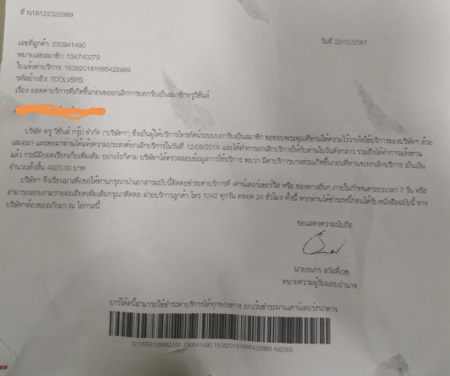 ผมได้ติดต่อยกเลิกบริการ Internet บ้านของทรู เพราะไม่ได้ใช้แล้ว และจ่ายโดยที่ไม่ได้ใช้ต่อเนื่องมาทุกเดือน ได้ติดต่อสอบถามที่ศูนย์ทรูเซ็นทรัลสุราษฎร์ธานี เจ้าหน้าที่ได้แจ้งวันครบสัญญาในการยกเลิก ผมก็ได้ไปยกเลิกตามที่เจ้าหน้าที่แจ้ง แต่วันนี้กลับมีเอกสารฉบับนี้มาถึงบ้าน