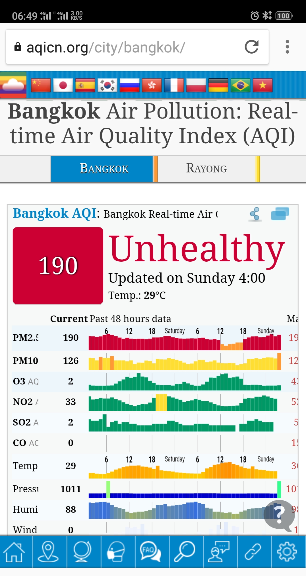 ช่วงตี 4 Aqi ของสมุทรสาคร ขึ้นสูงถึง 212(สีม่วง วิกฤติ) ก่อนจะลดลงมาเล็กน้อย ในขณะที่ช่วงเช้าของ กทม เปิดตัวด้วย 192 ก่อนจะลดลงมาเล็กน้อยเช่นกัน เป็นเช้าอีกวันห
