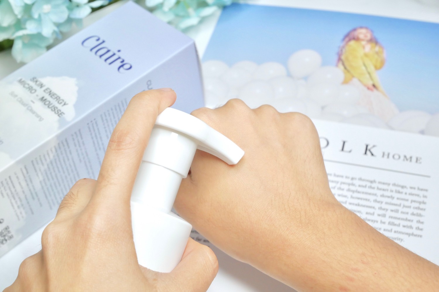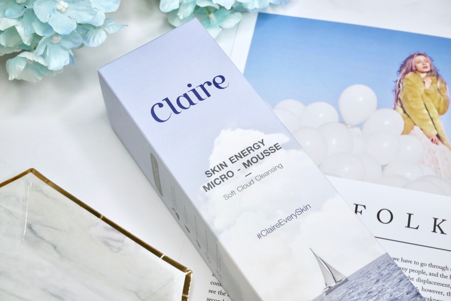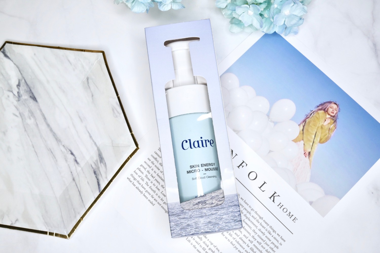 เปิดกล่องออกมาจะเจอกับมูสล้างหน้า Claire เป็นขวดปั๊มสีฟ้าอ่อน
