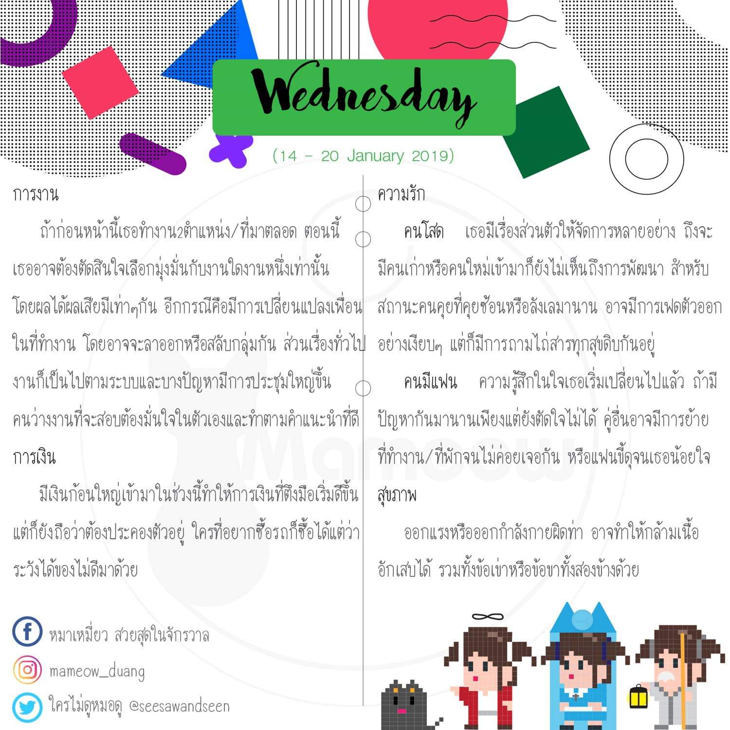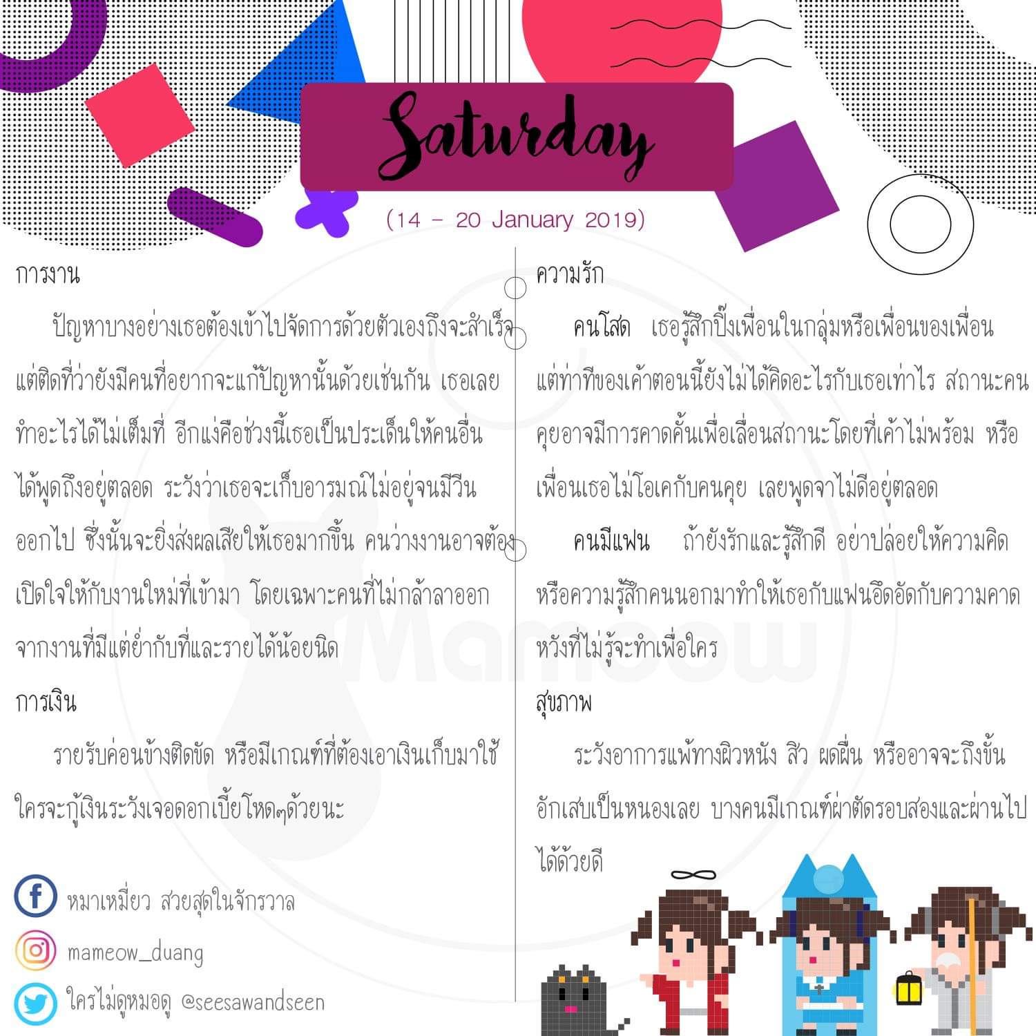 ดวงรายสัปดาห์ระหว่างวันที่ 14 - 20 มกราคม 2562