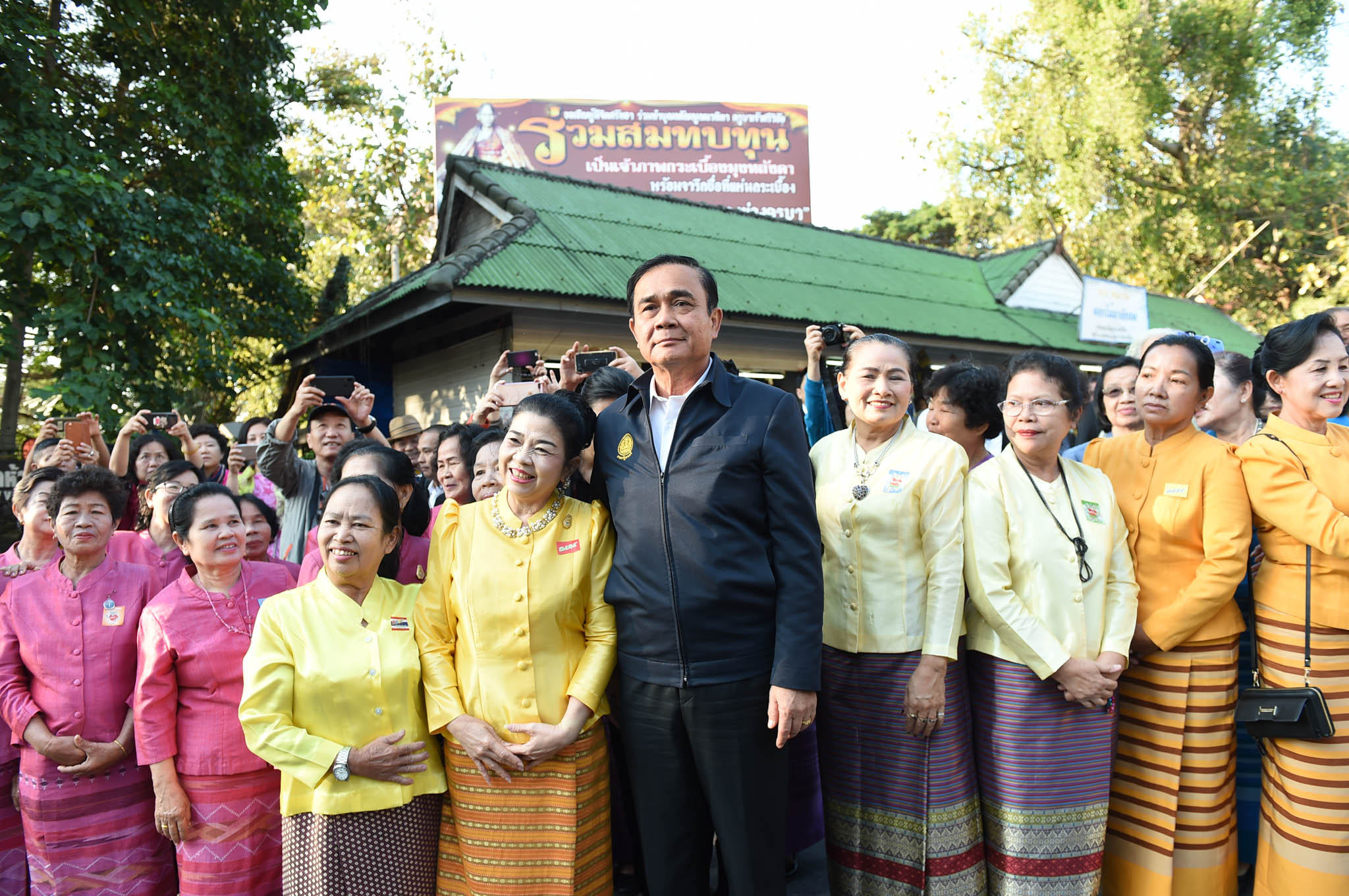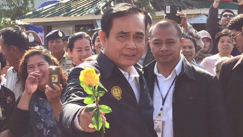 นายกฯ ได้เข้าไปทักทายประชาชนที่มาต้อนรับพร้อมไม้เซลฟี่ โดยมีชาวบ้านได้นำดอกกุหลาบสีเหลืองมามอบให้นายกฯ