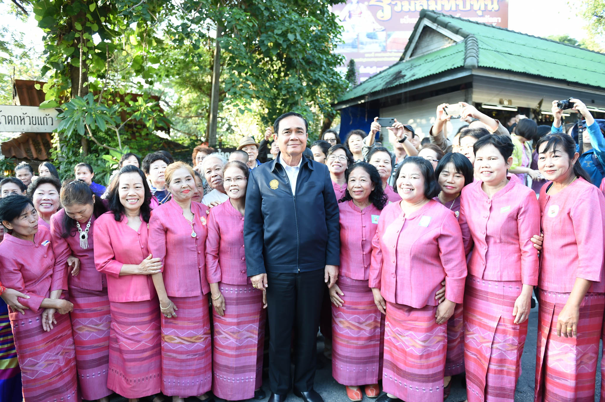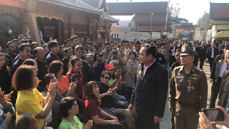 ขณะเดียวกันนายพูลพัชร พูลเจริญ ชาวนากองหนุนลุงตู่ ได้นำกองเชียร์กลุ่มเชียงใหม่-สันกำแพง ที่สวมเสื้อเขียนคำว่า "กองหนุนลุงตู่ เชียงใหม่ เฮาฮักลุงตู่" มาให้กำลังใจด้วย เมื่อผู้สื่อข่าวถามว่ารู้สึกอย่างไรที่มีแฟนคลับมาให้กำลังใจ นายกฯ กล่าวว่า ทุกคนต่างเป็นเอฟซีทั้งหมด เพราะเป็นคนไทยด้วยกัน สิ่งสำคัญ คือต้องฝากประเทศชาติไว้กับพวกเขาทุกคน ถ้าผมทำความดีแล้วมาชอบผม ก็เป็นบุญของผม คำว่าบุญของผม ก็คือจะทำให้ผมมีกำลังใจในการทำเพื่อประเทศชาติต่อไป" เมื่อถามว่าแล้วจะตัดสินใจเป็นนายกมนตรีต่อเลยหรือไม่ นายกฯ กล่าวว่า ไปดูกฎหมายสิ จากนั้นได้ขึ้นรถออกไปทันที